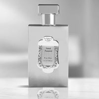 Emballage: L'Eau de Parfum Ancestrale Santal de La Sultane de Saba est présentée dans un élégant flacon argenté mat, qui respire la sophistication et la masculinité. Le design rectangulaire épuré est rehaussé d'un bouchon chromé poli qui ajoute une touche moderne. L'étiquette complexe présente des détails argentés et des motifs traditionnels, reflétant l'héritage luxueux de la marque. L'esthétique minimaliste met en valeur son attrait intemporel, tandis que la construction robuste assure la durabilité. Cet emballage incarne parfaitement le raffinement et l'exclusivité, ce qui en fait un ajout remarquable à toute collection de parfums.
